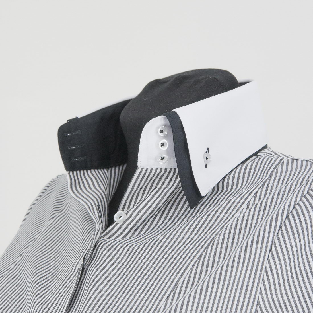 Воротник: Двойной, на 3-х пуговицах, высота 5 см.
