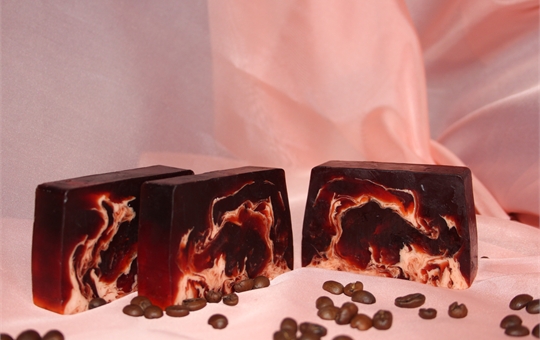 Темно-коричневое мыло с молочными разводами и бодрящим ароматом свежесваренного кофе.