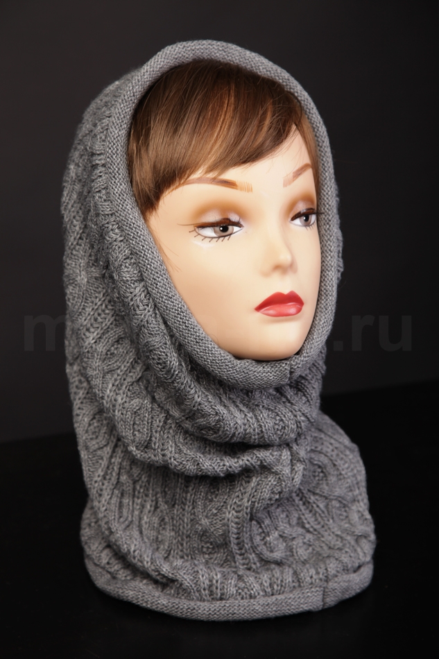 Шерстяной снуд машинной вязки из меланжевой пряжи. Вязка крупными косами и актуальные расцветки делают эту модель оригинальным дополнением гардероба.