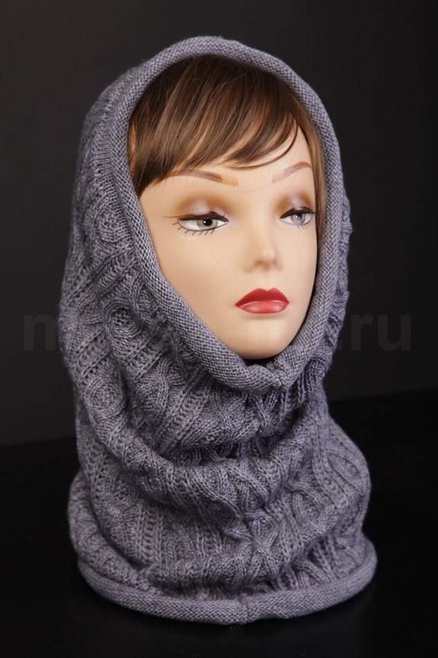 Шерстяной снуд машинной вязки из меланжевой пряжи. Вязка крупными косами и актуальные расцветки делают эту модель оригинальным дополнением гардероба.